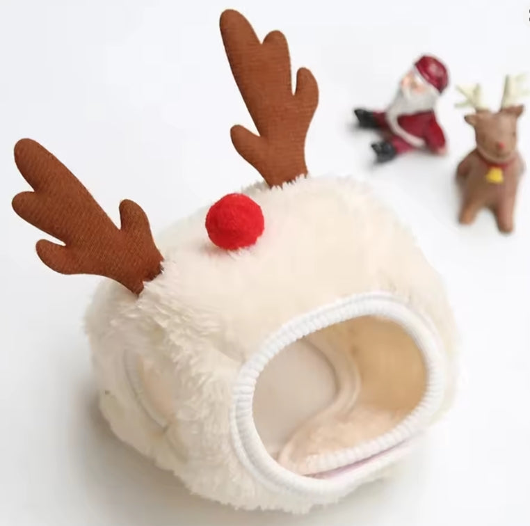 Christmas Puppy Dog Cat Costume Xmas Cat Santa Elk Hat with Bandana Bib Scarf Set Cat Accessories Pet Holiday Dress Up Supplies