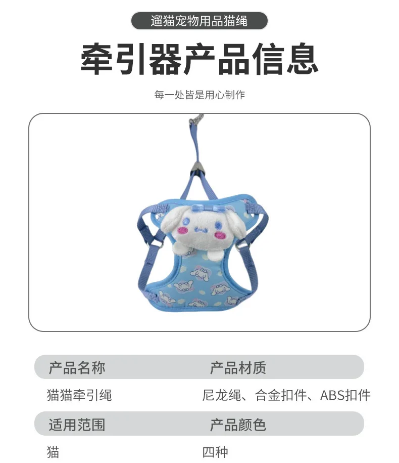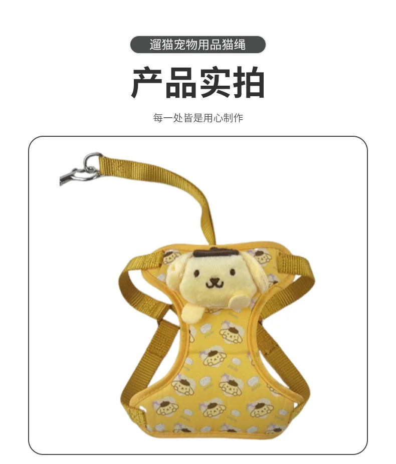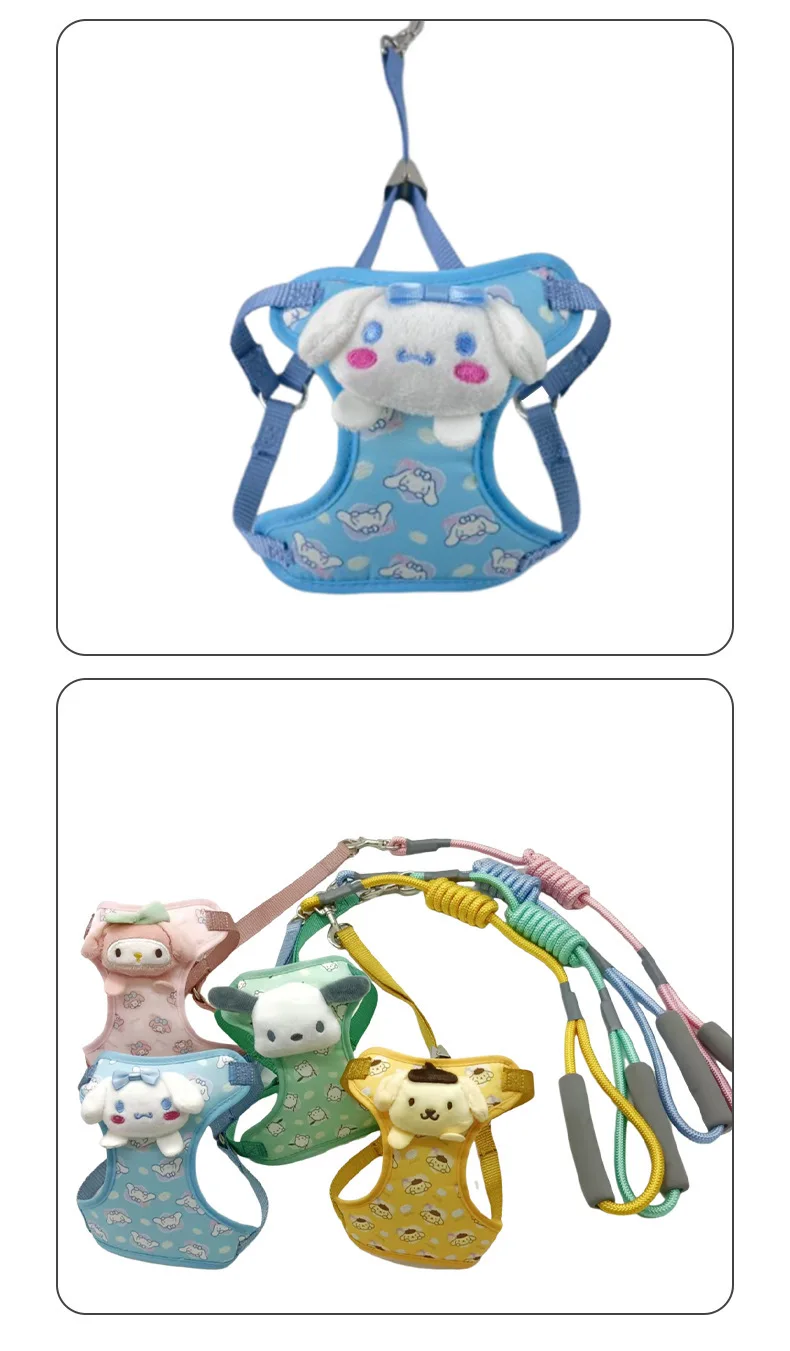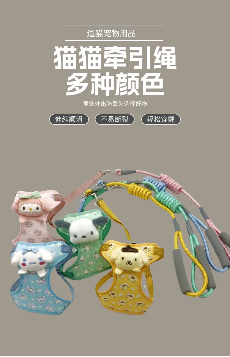 New Sanrio Kuromi Cinnamoroll Anime Pet Traction Rope Vest Explosion-proof Sturdy and Durable Outdoor Cat and Dog Traction Rope
