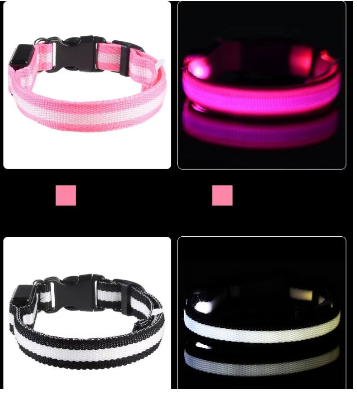 Nylon LED Night Safety Flashing Glow In The Dark Dog Leash Dogs Luminous Fluorescent Pet Dog Collar